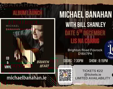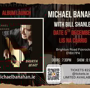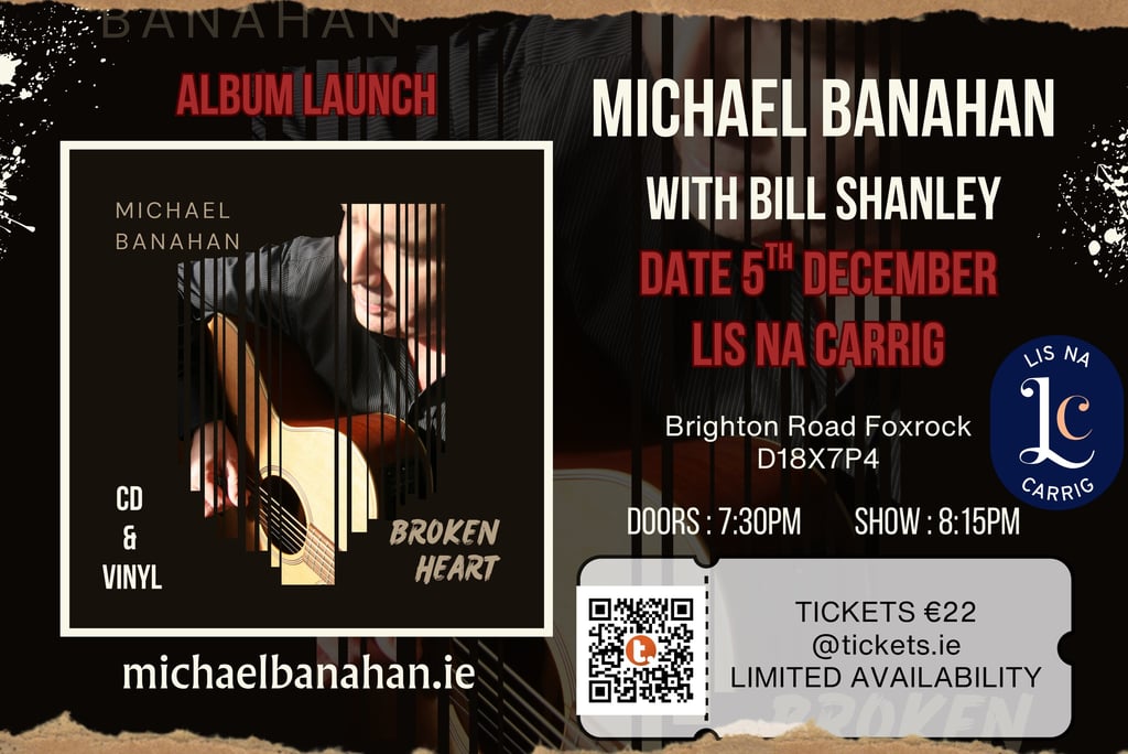 Broken Heart is written by Michael and co-produced with Bill Shanley; one of Ireland’s legendary guitarists and record producers. Broken Heart has been taking shape in Michael’s mind for the past few years, and in 2024, the songs finally arrived, followed closely by the production. Reflecting on the experience, Michael shares: “The process was healing in many ways, and as always, working with Bill on the production was a gentle and positive journey.”